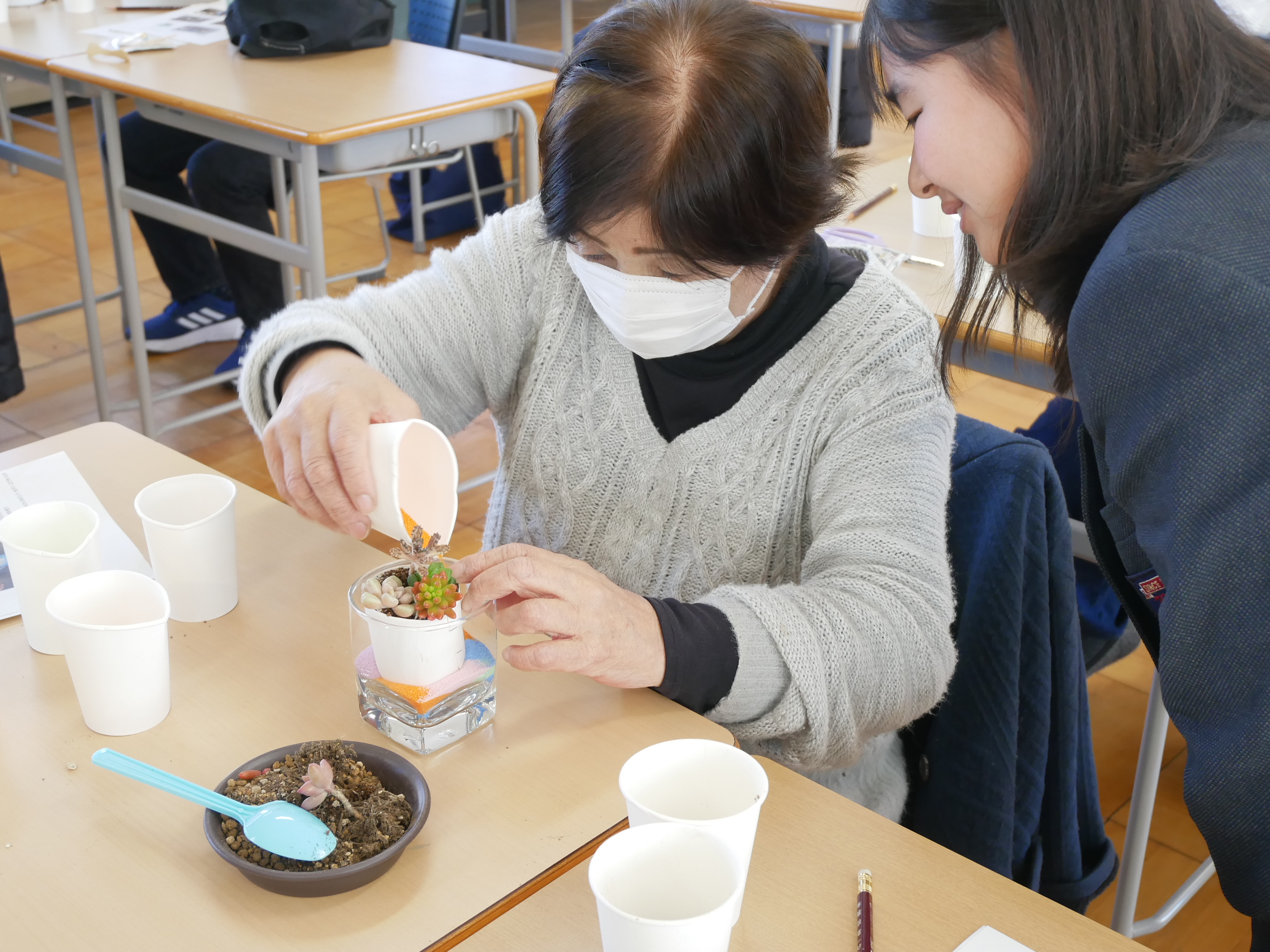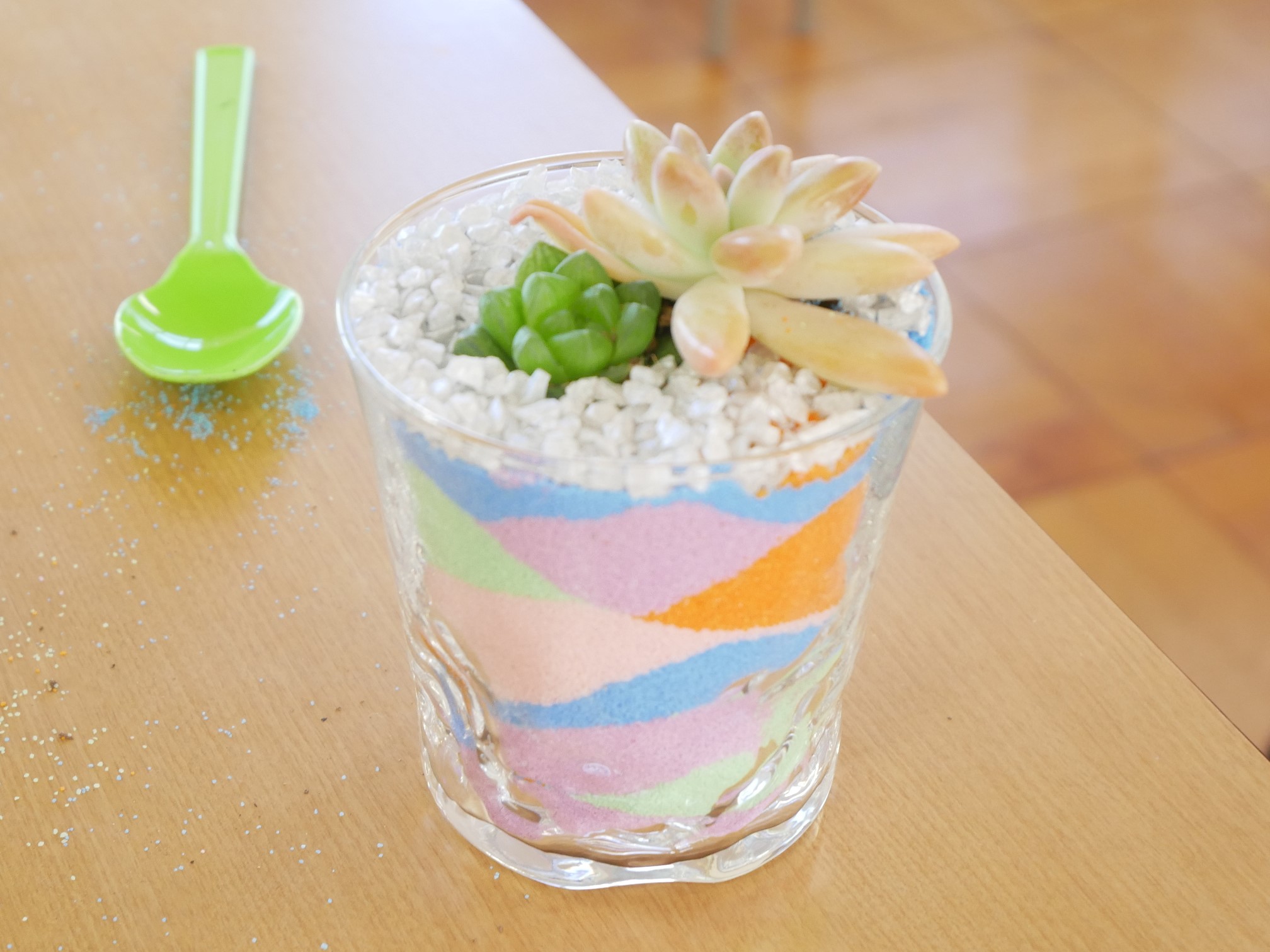 【講座内容】 羽生実業高等学校で栽培した多肉植物を使い、サンドアートを作製する。
