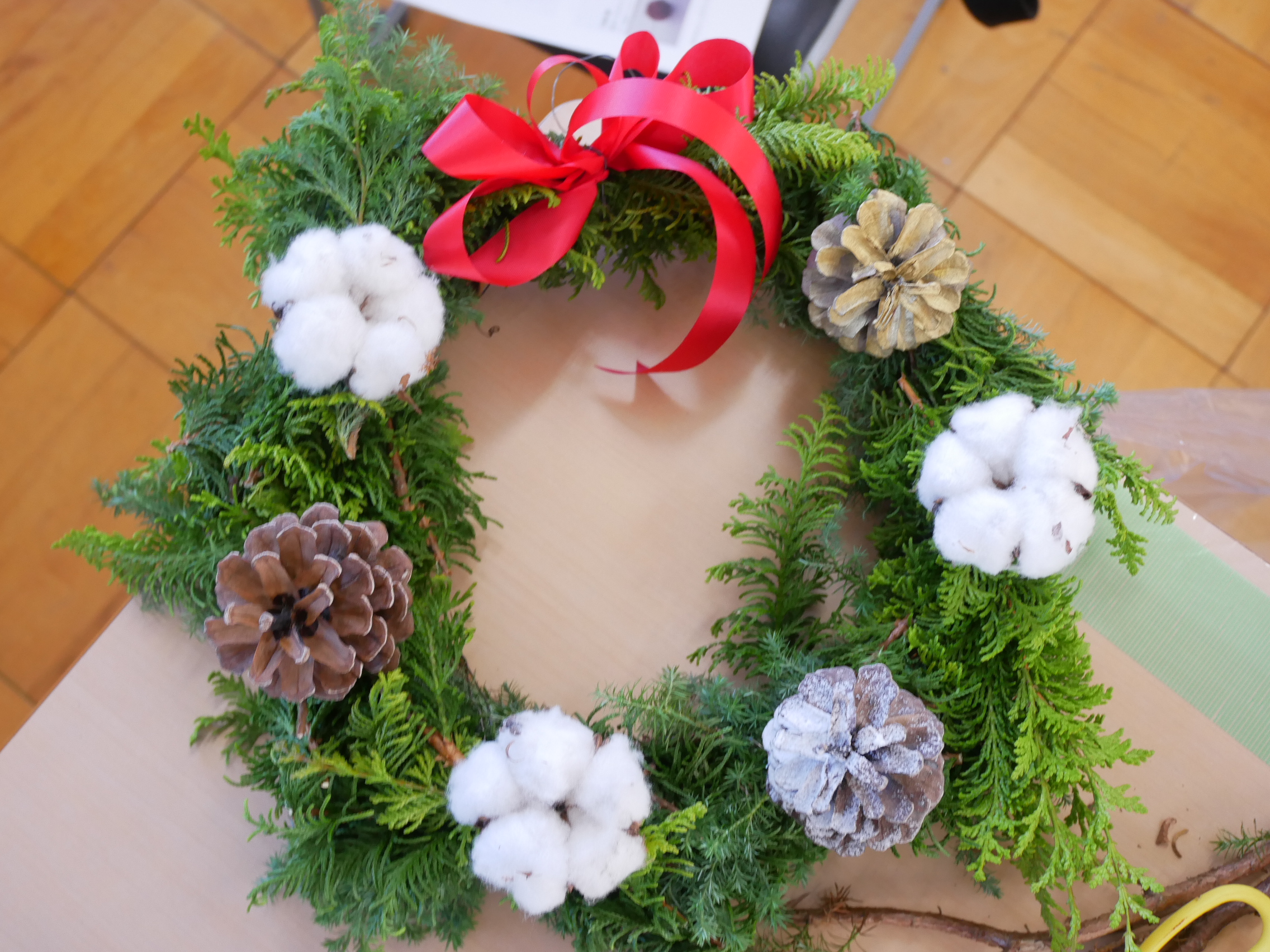 【講座内容】 ヒマラヤ杉などを使い、手作りでリースを作製する。