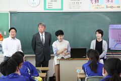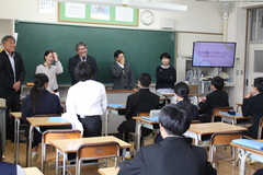 講座では、市議会をより身近に感じていただき、地方議会に対する興味や関心を持ってもらうことを目的に、議会改革特別委員会の柳沢暁委員長、斎藤万紀子副委員長、西山丈由委員、田口さとる委員、昆佳子委員が出席し、2年生の生徒を対象に、市議会の仕組みや役割、政治に関心を持ってもらうことなどの説明とともに、事前アンケートに対する回答を行いました。