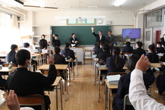 事前アンケートでは、生徒から議員に対し「どんな仕事をしているのか? 1日のスケジュールは?」「議員の報酬はいくらか?」「議員の仕事のやりがいや大変なことは?」などの質問が寄せられ、議員はわかりやすく、丁寧に説明を行いました。