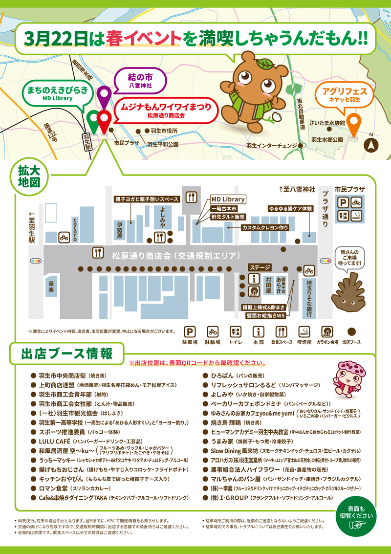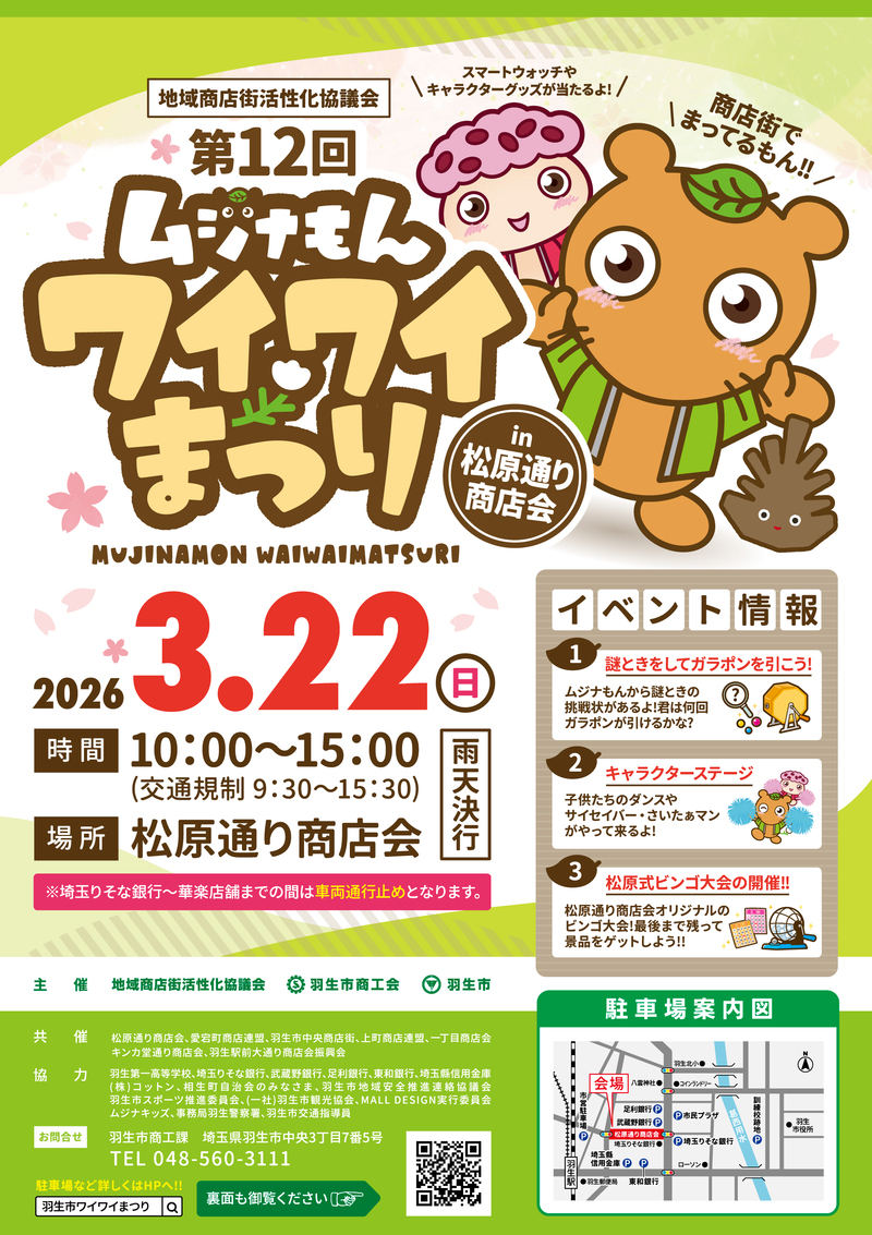 羽生市内の商店街において、ムジナもんワイワイまつりが開催されます!