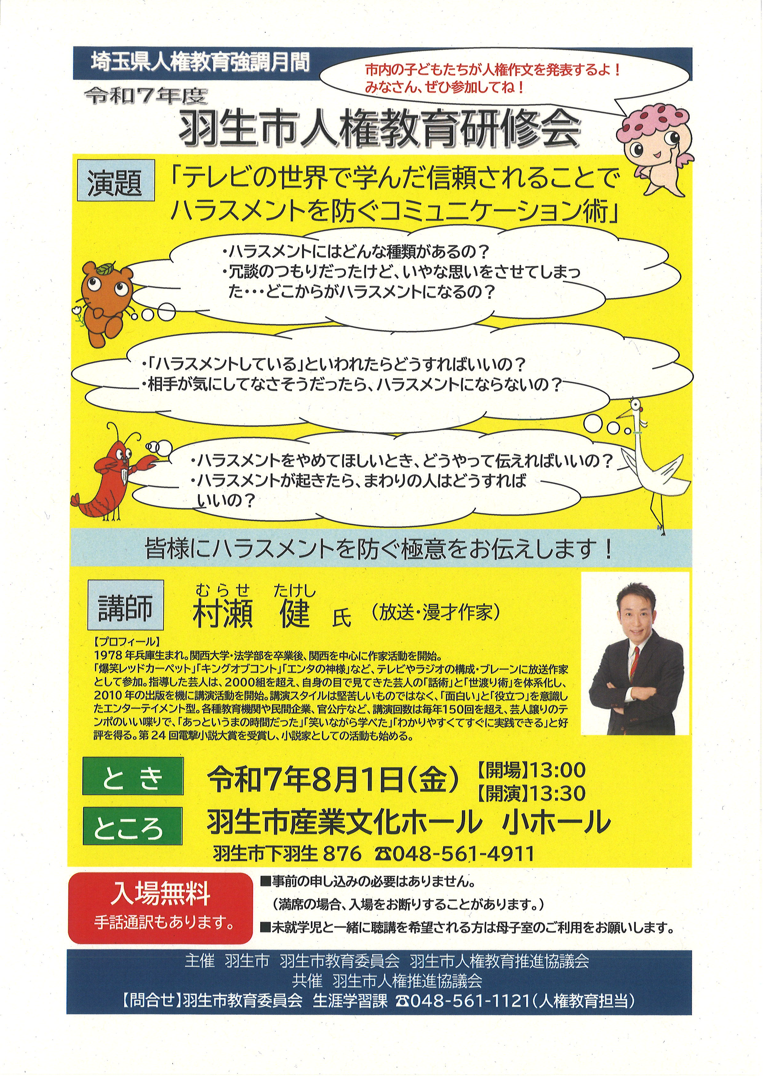 ▼その他 本研修会は、羽生市人権教育指導者研修会と併催となります。