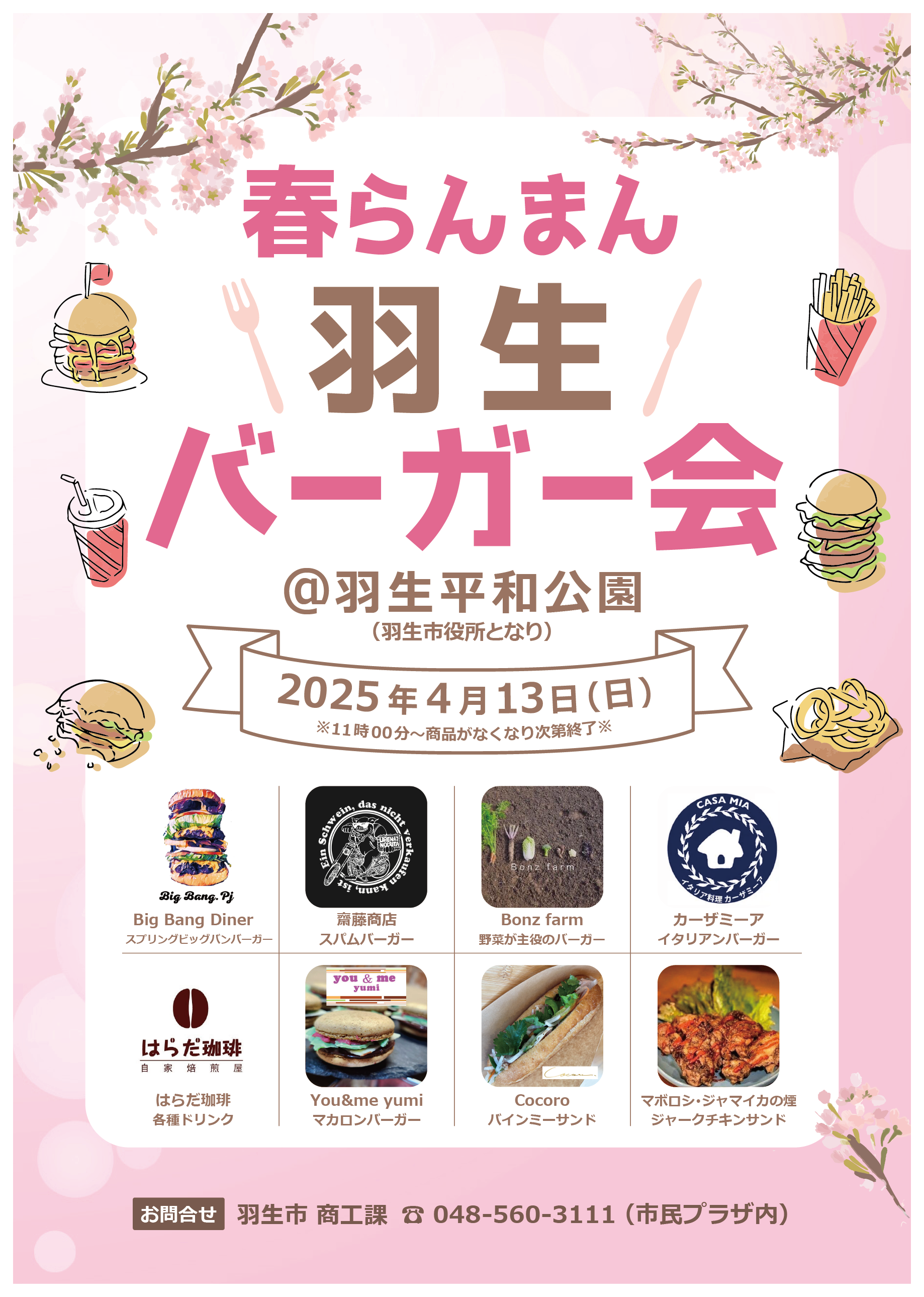 4月13日(日)「春らんまん羽生バーガー会」を開催します!