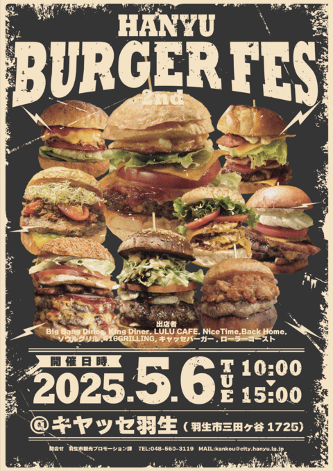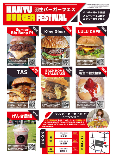 羽生市内外の人気バーガー店が集結し、地元の魅力を味わえるグルメバーガーの祭典です。