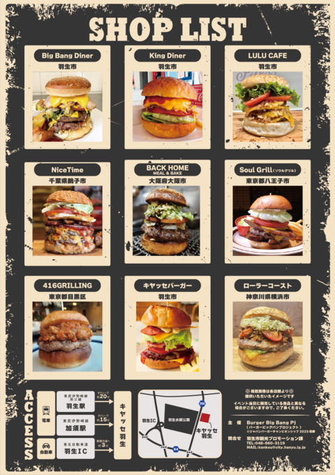 羽生市を舞台に、地元の実力派から県外の人気店まで、選りすぐりのプロフェッショナルなバーガーショップが集結するイベントです。