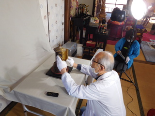 また、むかしからたいせつに地域(ちいき)でのこされてきた寺(てら)や神社(じんじゃ)などで保管(ほかん)されている仏像(ぶつぞう)や掛軸(かけじく)などをしらべにうかがうこともあります。