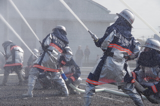 ![]() 火災(かさい)や地震(じしん)、台風(たいふう)などの災害(さいがい)が起(お)こった時(とき)には消防車(しょうぼうしゃ)に乗(の)って出動(しゅつどう)して火(ひ)を消(け)したり、困(こま)っている人(ひと)を助(たす)ける活動(かつどう)をしています。 |