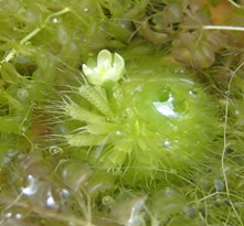 ムジナモは、分岐(ぶんき)して増殖(ぞうしょく)する植物(しょくぶつ)ですが、まれに花(はな)を咲(さ)かせることがあります。ムジナモの花(はな)は真夏(まなつ)のよく晴(は)れた日(ひ)のお昼(ひる)頃(ごろ)にしか咲(さ)きません。しかも、開花(かいか)時間(じかん)はわずかに1時間(じかん)ほど!そのため、“まぼろしの花(はな)”と言(い)われています。