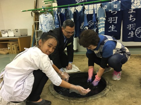 羽生市民(しみん)プラザには、藍染(あいぞ)めをたくさんの人(ひと)に知(し)ってもらうため、初心者(しょしんしゃ)でも藍染(あいぞ)めを体験(たいけん)することができる藍染(あいぞ)め体験(たいけん)コーナーがあります。