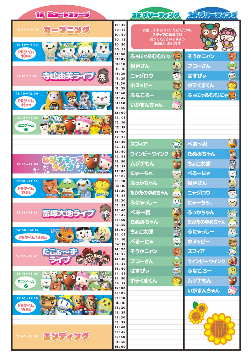 ◆内容 キャラクターPRステージ・キャラクターグリーティング・歌手ステージなど