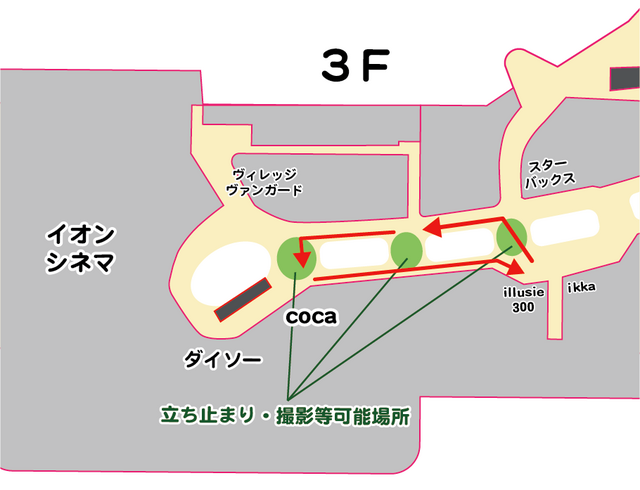 ※西コート周辺店舗前での立ち見や、キャラクターとの触れ合いはできません