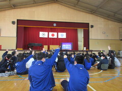 3学期の始業式も体育館に参集し、開催しました。