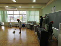 学校全体の清掃や入学式準備などに新6年生が取り組みました。