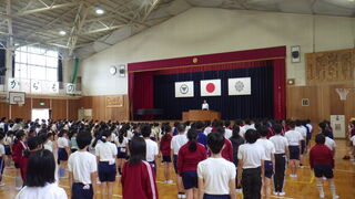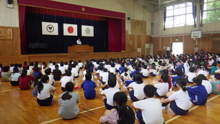 今年度初めて、全校児童が体育館に集まりました。
