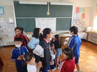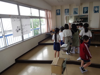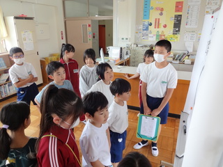 縦割り班で、校舎内のチェックポイントに行き、クイズに挑戦しました。クイズに正解しながら、”5つの気”を集めました。