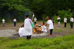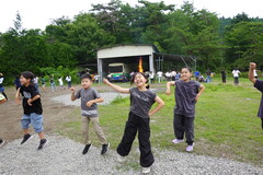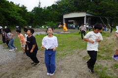 そして、お楽しみのキャンプファイヤー。夜の悪天候が予想されていたため、予定を変更しての実施でした。急な変更にも関わらず、実行委員を中心に、元気いっぱいダンスを踊り、4つの火を火の神から受け継ぐことができました。