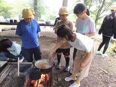 2日目は、飯盒炊飯。班の仲間と力を合わせ、どの班もおいしいカレーを作ることができました。