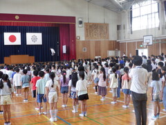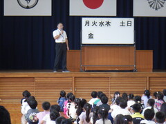 公開日 2024年07月23日 7月19日(金)に令和6年度の1学期終業式を行いました。 しっかりとした態度で、話を最後まで聞くことができました。 40日の夏休みを充実したものにし、2学期の始業式にはさらに成長した姿を見せてください。