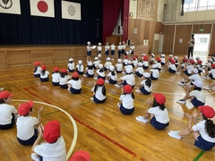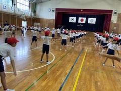2年生の運動会実行委員8名がみんなの前に出て抱負を語っています。