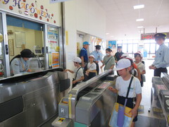 10/17(木)に、まちたんけんに行ってきました。羽生駅では、駅員さんから駅での仕事内容を聞いたり、ホームにある非常ボタンや車いす用のスロープなどを実際に見せてもらったりしました。羽生郵便局では、地下にある配達用のバイクや自転車などを見学しました。また、郵便局の方へ質問をして、いろいろと知ることができ、充実した学習ができました。