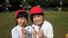 夏にはなかった木の実を見つけたり、校庭で見つけたものと違う形の落ち葉を見つけたりと、たくさんの秋を見つけることができました。