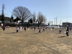1年生の生活科「むかしあそび」の学習で、凧あげをしました。