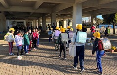 各クラスのあいさつ大賞に選出された児童たちが集まって、元気なあいさつをしてくれました。