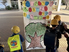 あいさつができた人は、大きな台紙にシールを貼って、大きなあいさつの木が出来上がりました。