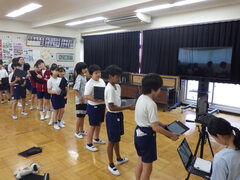 みんながいやな思いをしない、笑顔あふれる羽生北小学校にしていくために、代表委員が内容を考えて発表しました。