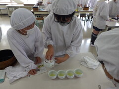 家庭科のお茶の入れ方の学習では、緑茶の濃さが同じになる