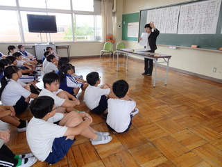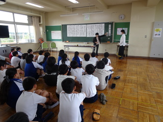6年生を対象に「宮澤章二」の作品についての説明を聞いたり、朗読をしたりしました。羽生市に所縁があることもあり、真剣に話を聞く様子が見られました。