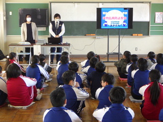 今年度も「薬物乱用防止教室」が行われました。薬物が心や体に及ぼす影響を分かりやすく教えていただき、子供たちは真剣な表情で耳を傾けていました。「薬物乱用はダメ。ゼッタイ。」の気持ちを忘れず、自分の体を大切にして、健康で安全な生活を送ってほしいと思います。