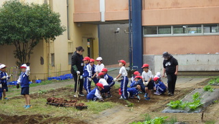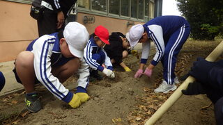 1・2年生、わかば学級が「サツマイモ掘り」をしました。土を掘るたびに大きなサツマイモが顔を出し、子供たちは笑顔いっぱいで楽しんでいました。自分たちで育てた作物を収穫する喜びを感じながら、自然の恵みに感謝する貴重な体験となりました。