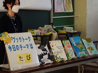 「旅」をテーマに子供たちがそれぞれ本を紹介しました。その後は自分が気になる本をたくさん読んだり、おすすめの本を友達に教えてあげたりと楽しい時間を過ごしました。