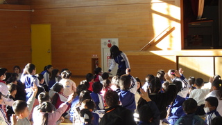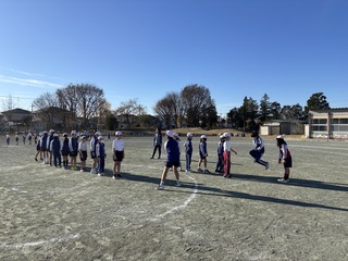 今月の全校体育は「なわとび」の運動を行いました。前半は、音に合わせて跳ぶリズム跳びや個人跳びの練習をしました。後半は、各クラスに分かれて、集団跳び、八の字跳びの記録に挑戦する時間となりました。失敗をしても励まし合う様子や全員で声を合わせて数える様子など、一致団結して行っていました。