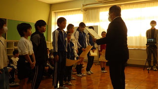 子供たちが夏休み中に取り組んだ図画工作や課題図書作文の表彰が行われました。たくさんの子供たちが堂々とした姿勢で表彰を受け取り、温かい拍手に包まれていました。
