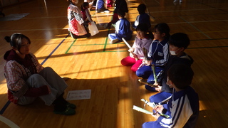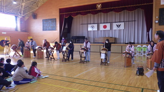 地域の方々の御協力のもと、「おはやし体験」が行われました。太鼓の音や笛の音に触れながら、伝統文化の魅力を体いっぱいに感じる貴重な体験となりました。子供たちも実際に音を出し、仲間とリズムを合わせる中で、楽しさだけでなく、地域に受け繋がれきた文化の重みや人とのつながりも学ぶことができました。