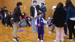 羽生市体育館にて合同学習会「進級・卒業を祝う会」が行われました。前半は、卒業生へ歌をうたったり、色紙をプレゼントしたりして、感謝を伝えることができました。後半は、ゲームを楽しもうで「ボッチャ」をして楽しみました。