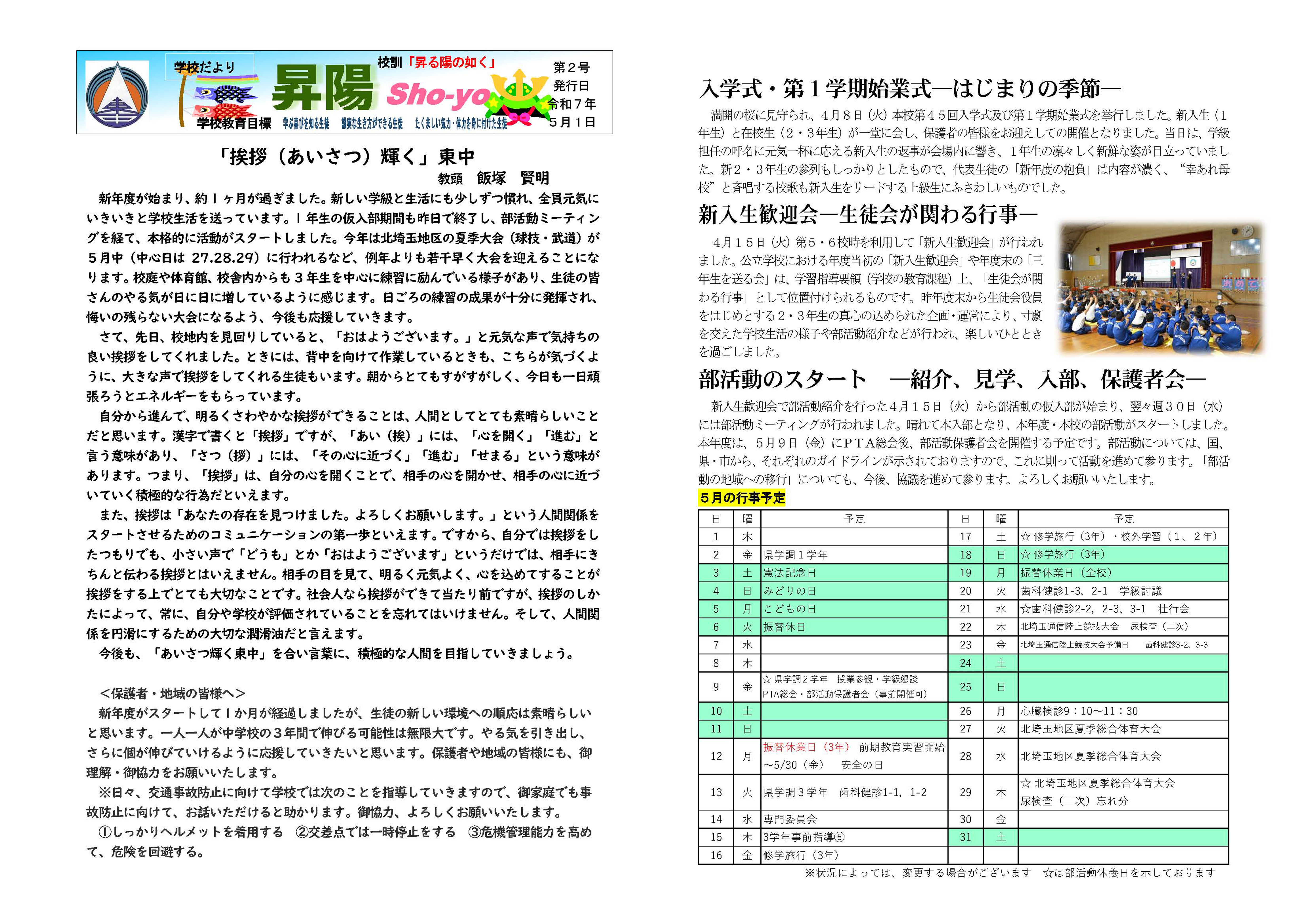羽生市立東中学校 学校だより第2号[PDF:731KB]