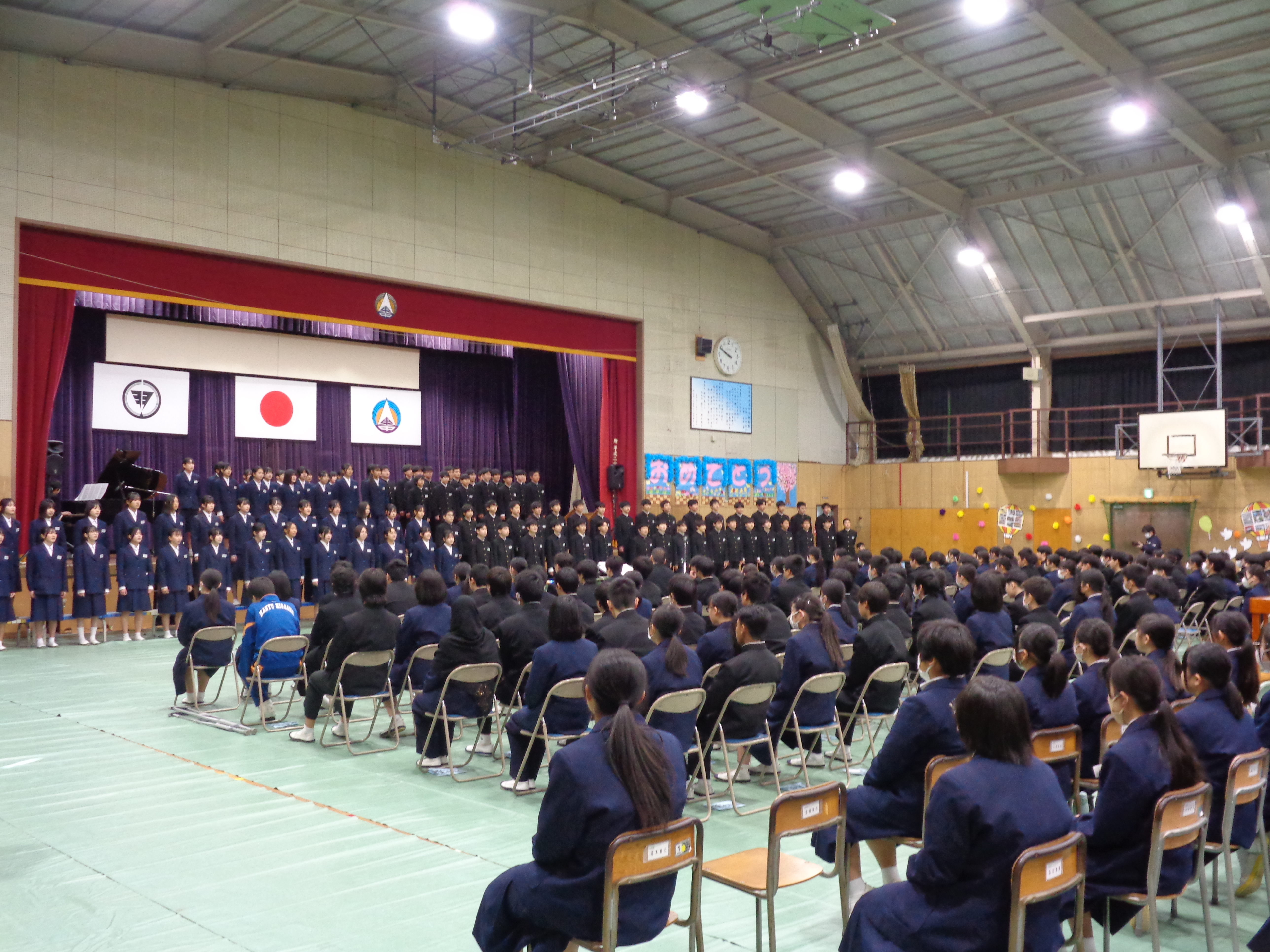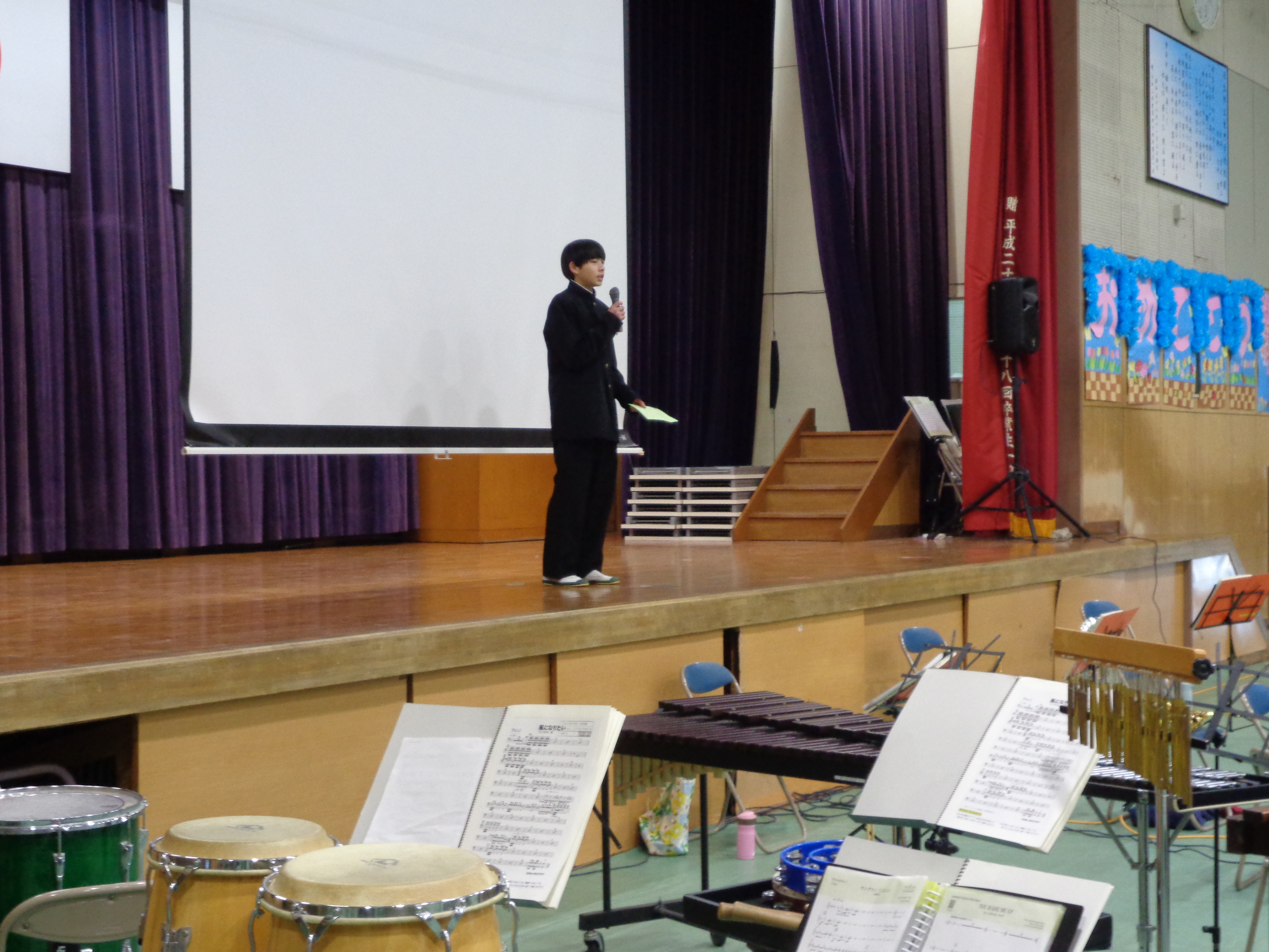 本日、3年生を送る会が行われました。会では、1年生が飾り付けを行い、2年生の学年合唱、吹奏楽部の演奏、そして思い出ビデオの上映がありました。3年生の皆さん、東中に通えるのもあと1週間。一日一日を大切にして仲間や学年の絆を深め、来週の卒業式に臨みましょう。1・2年生の皆さん、3年生への感謝の気持ちがこもった3送会、ありがとうございました。
