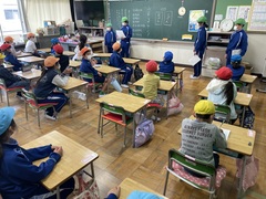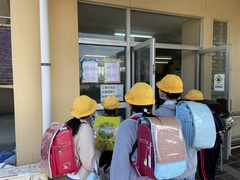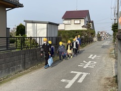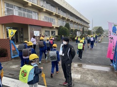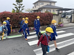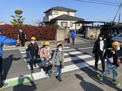 11日(月)に1年生も一緒に登校をしました。班長さんが歩くペースを考えて学校j行きました。