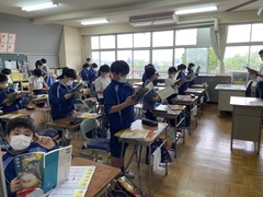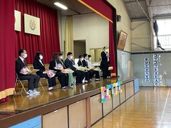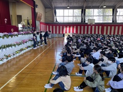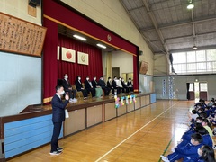 15日(金)に離任式を行いました。5時間目に体育館で10人の先生方が登場し、児童たちからも笑みが見られました。6時間目には、それぞれの教室でふれあいがありました。