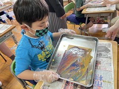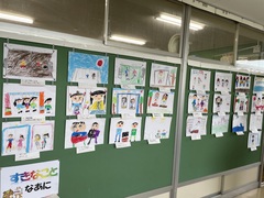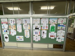 2号館の1,2年生の廊下に児童が描いた作品が展示しています。