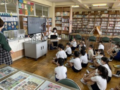 図書室の使い方や、どこにどの本があるか探したり、クイズをしたりしました。