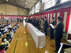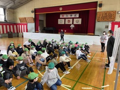6日(水)に新6年生の準備登校が行われました。体育館に集まり、福島校長先生よりお話を聞きました。