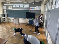 準備登校では各教室の机や椅子の数の調整や、清掃、新1年生の教室準備等を行いました。