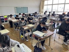 19日に6年生が全国学力・学習状況調査を行いました。理科が加わり午前中には終わりました。1つ1つの問題をじっくり読み解いていました。