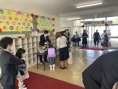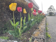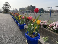 学校ではチューリップが多く咲いておりました。下駄箱では綺麗にかかとを揃えて靴箱jに入れました。