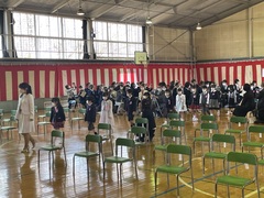 始業式後には6年生が入学式準備のため、保護者用椅子のセッティングのお手伝いをしてくれました。