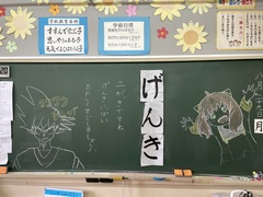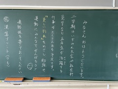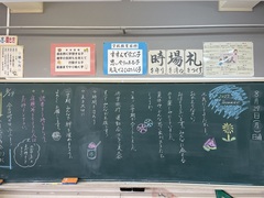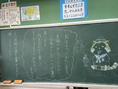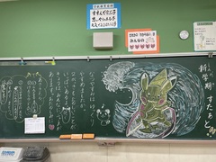 先生方は子どもたちが来るのを楽しみにしていました。各クラス黒板アートで準備万端!